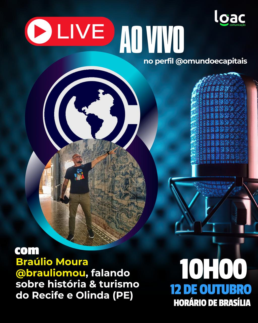 No próximo 12 de outubro, às 10h, o perfil do Instagram @omundoecapitais será palco de uma live imperdível com Braúlio Moura, gerente de inovação turística da Secretaria de Turismo e Lazer do Recife. A conversa vai abordar temas essenciais para quem se interessa por turismo, história e cultura das cidades irmãs Recife e Olinda.