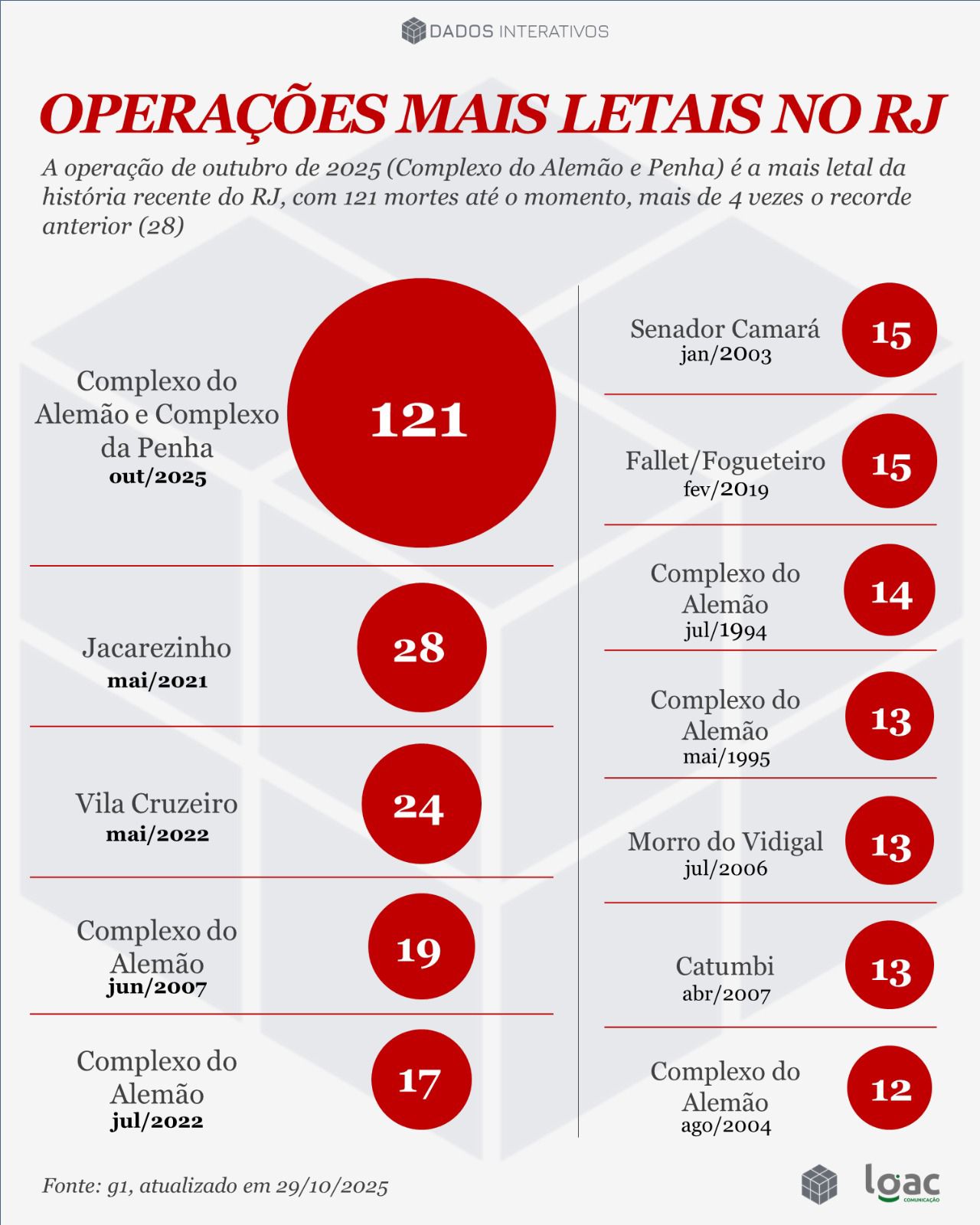 A megaoperação desta semana ultrapassou o número de mortos da ação do Jacarezinho , em 2021, que deixou 28 pessoas mortas e foi, até então, considerada a mais letal da história do estado.
